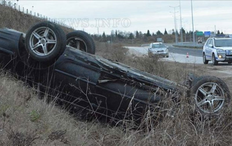 Инцидентът е станал близо до пътен възел Тополовград. Поради движение с несъобразена скорост младият шофьор е загубил контрол над колата и се е преобърнал в канавката. Автомобилът е с кърджалийска регистрация.