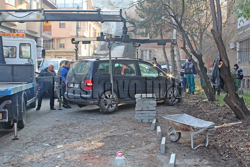 Преместиха с „паяк“ Фолксваген, пречещ на ремонт