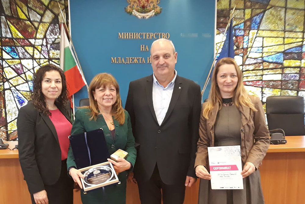 На официална церемония в Министерството на младежта и спорта зам.-министърът Стоян Андонов връчи почетни плакети и спортни пособия на директора Гинка Райчева и нейния екип.