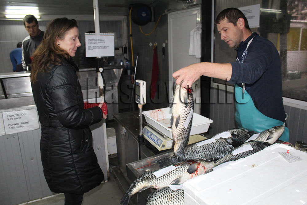 Голямо е търсенето на риба от сутринта в популярните специализирани магазини на днешния Никулден в Хасково.