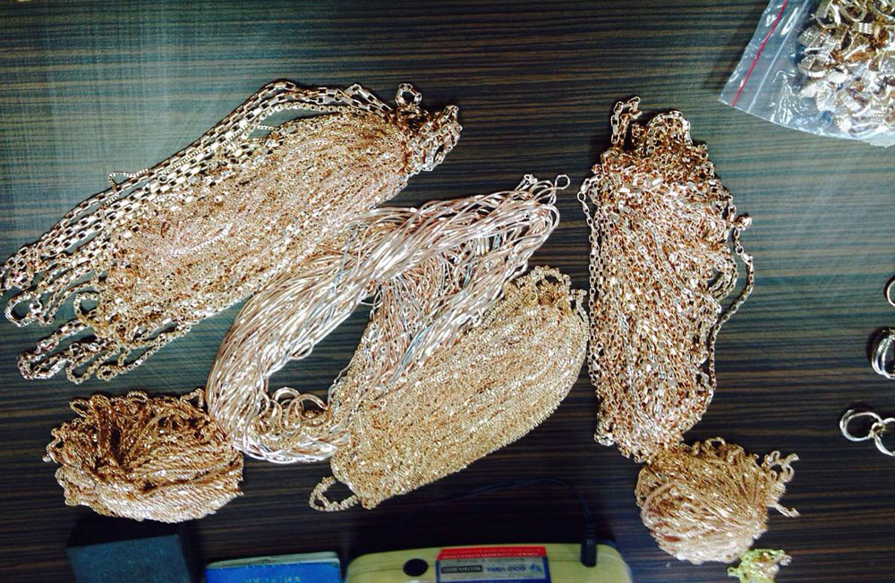 При извършената проверка се установява, че зад шофьорската седалка, в текстилна чанта, са укрити четири найлонови пакета, съдържащи 90 накита – пръстени, медальони, гривни, синджири и обици. Според експертизата на вещото лице, откритите накити са от 14- и 18-каратово злато с общо тегло 1073.66 грама и са на стойност над 60 000 лв.