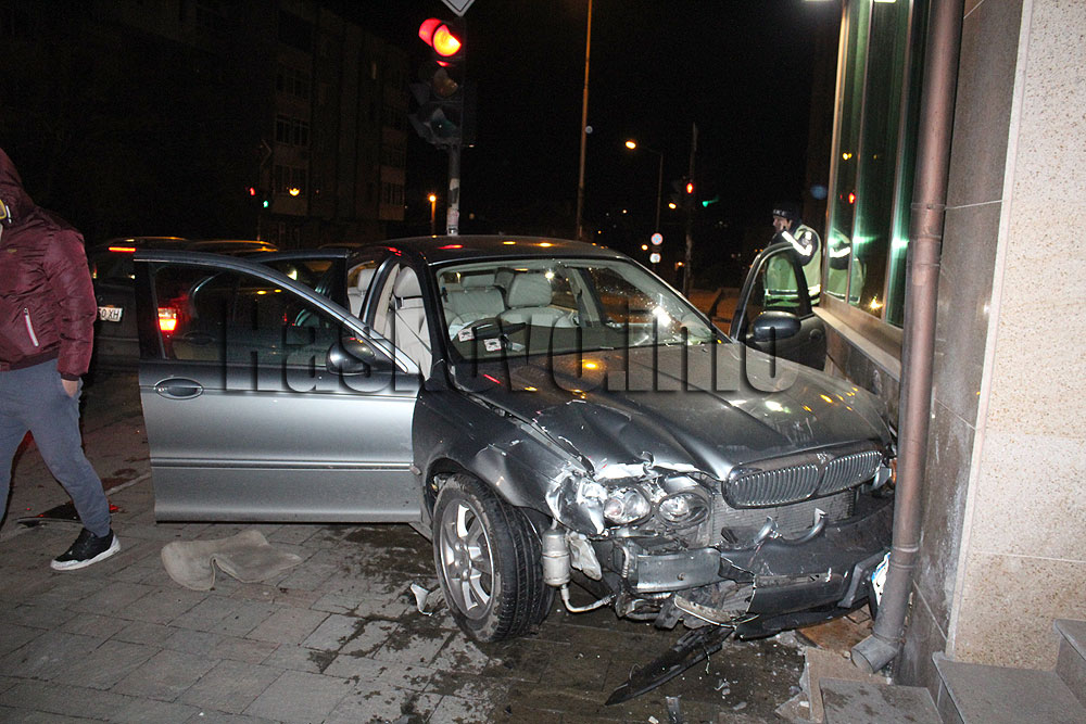 Инцидентът стана малко преди 19 часа на кръстовището между улиците „Георги Кирков“ и „Дунав“. След удара във Форда, Ягуарът се е забил в стената на заведение за бързо хранене.