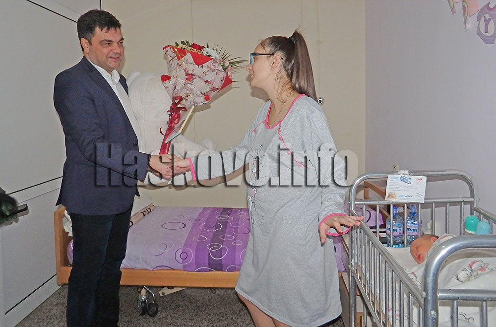 При срещата си с младата майка, Димов заяви, че 2019 г. ще е мъжка година, тъй като за първи път от четири години насам първото новородено в общината е момченце. Кметът напомни, че всяко новородено получава еднократна финансова помощ от общината в размер на минимална работна заплата. До три месеца след раждането родителите трябва да подадат заявление в общинска администрация. На над 100 000 лв. възлизат раздадените общински помощи за новородено през изминалата година.