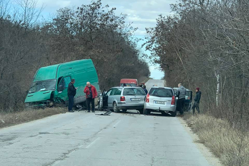 Две коли и бус катастрофираха и затвориха пътя от Хасково за Симеоновград