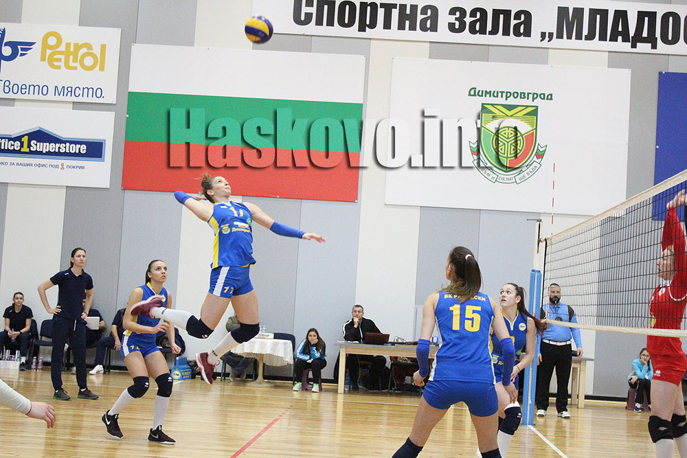 Момичетата на старши треньора Габриела Айшинова се хвърлиха здраво в срещата още от първите разигравания и показаха, че ще играят само и единствено за победа. „Раковски“ взе първия гейм с 25:22, като водеше и почти през цялото време на втория, спечелен с 26:24. Домакините стартираха ударно и в третата част с 4:0. ЦСКА успяха да се върнат за кратко в частта, но Емилета Рачева направи хубава серия на начален удар и Димитровград отново дръпна напред, за да затвори мача след 25:15 за радост на многобройната публика. Симона Николова е най-резултатна с 13 точки, като силен мач направи и Силвия Андреева, както и останалите момичета.