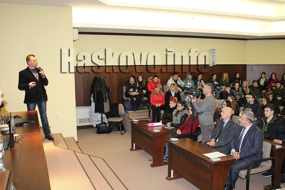 Специалистът изнесе лекция на тема „Превенция срещу употребата на наркотични вещества. Престъпления, извършвани от наркозависими лица“ пред ученици от хасковската ПГТ „Александър Паскалев“. С лекцията за пета поредна година стартира образователната програма на хасковския съд и прокуратура „Съдебната власт – информиран избор и гражданско доверие. Отворени съдилища и прокуратури“ с партньор гимназията по туризъм.