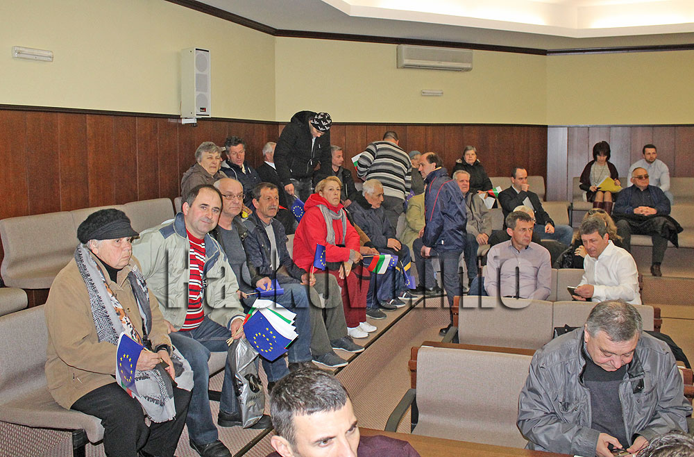 Хората се събраха пред сградата на общината, след което влязоха на сесията на местния парламент. Те връчиха по едно европейско знаме на кмета Добри Беливанов, предсдателя на общинския съвет Таня Захариева и нейния заместник Митко Полихронов.