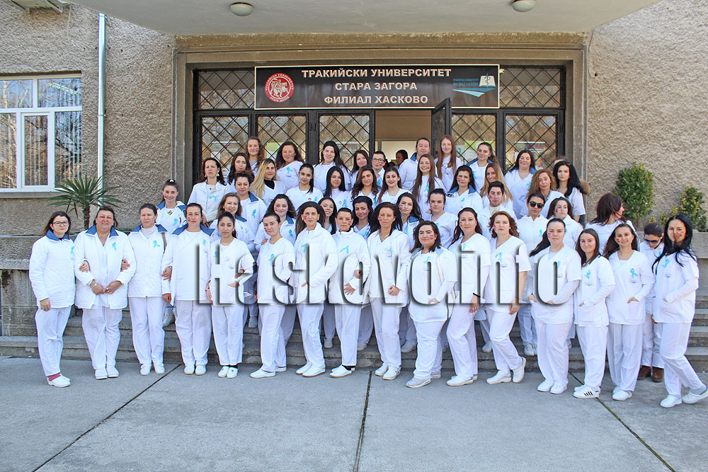 Масово студентите в Медицинския филиал в Хасково подкрепиха протеста. Те от вчера носят сини протестни лентички.