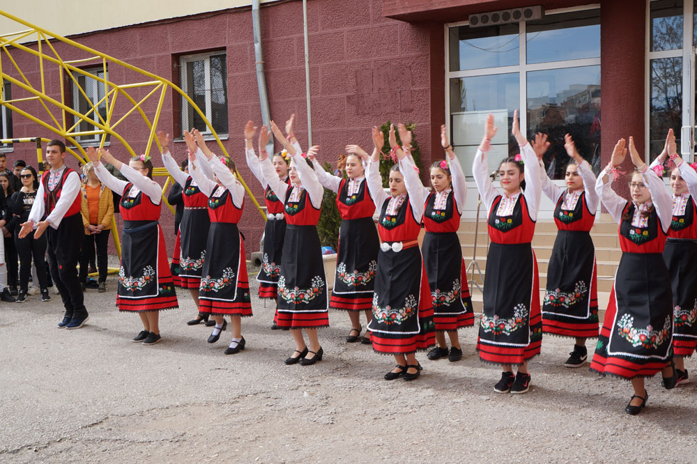 Ученици и учители от хасковската Професионална гимназия по туризъм „Александър Паскалев“ се включиха в аванс в световната инициатива на сдружение „Азбукари“ и „Българи за България“ „Пробуждане с хоро“ по повод Националния празник – Трети март.