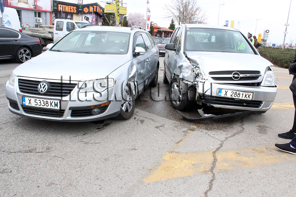Двете коли са шофирани от жени. Фолксвагенът е излязъл от паркинга на търговски обект и двата автомобила са се ударили. Шофьорката на Опела е изпитвала болки и е била откарана за преглед в болницата.
