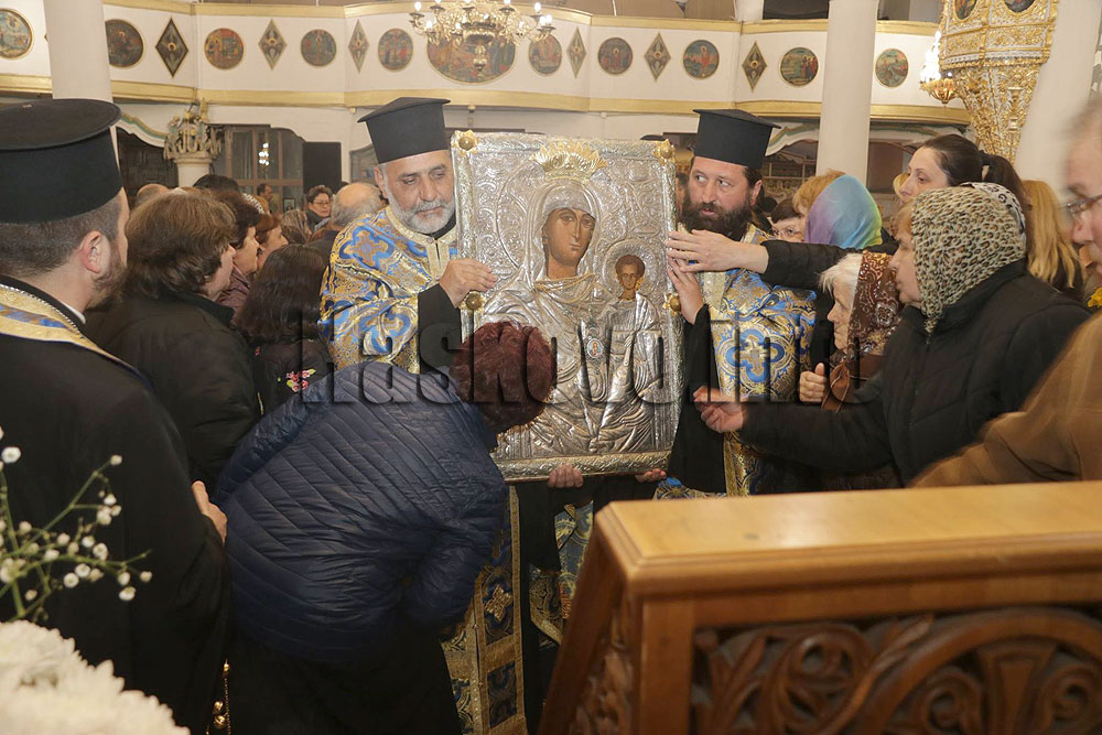 Множество миряни посрещнаха чудотворната икона „Света Богородица – златна ябълка“ в хасковската църква „Успение на пресвета Богородица“.