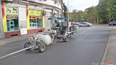 Полицаи временно затвориха преасфалтирания участък от хасковския булевард „България“ покрай театъра за полагането на нова маркировка.